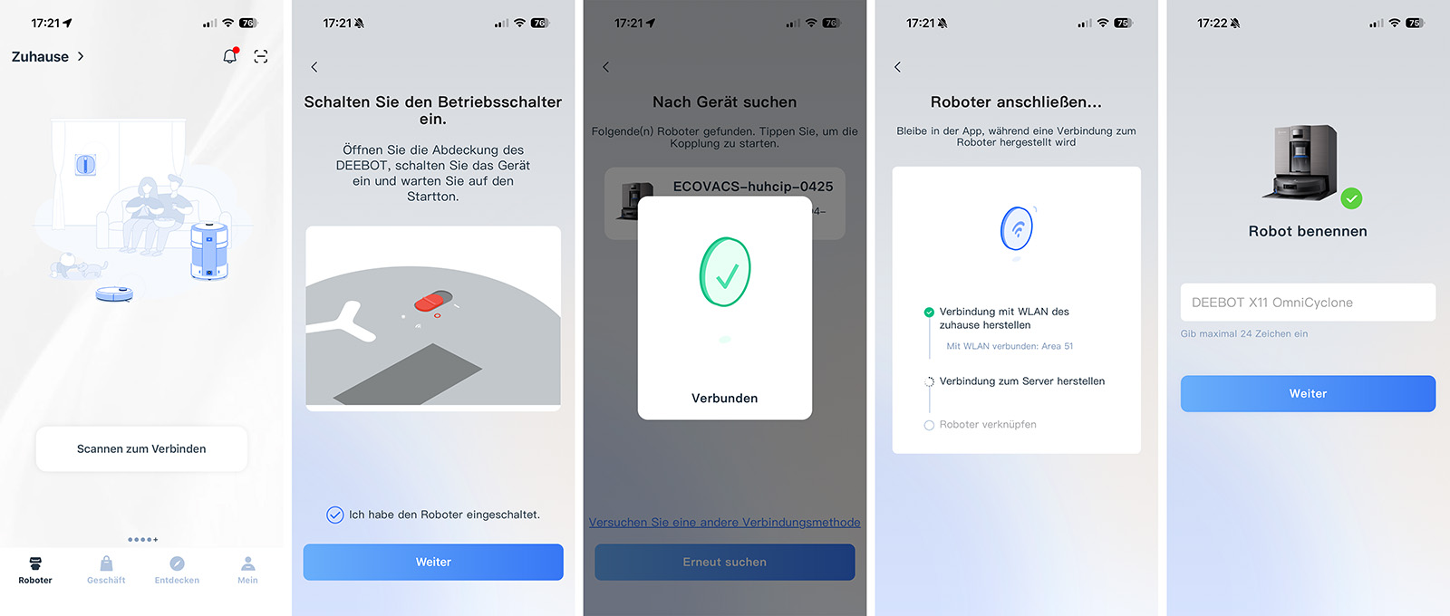Die Einrichtung läuft wie bei den anderen ECOVACS-Modellen über die ECOVACS Home App ab. Wer bereits einen Account hat, kann direkt loslegen.
